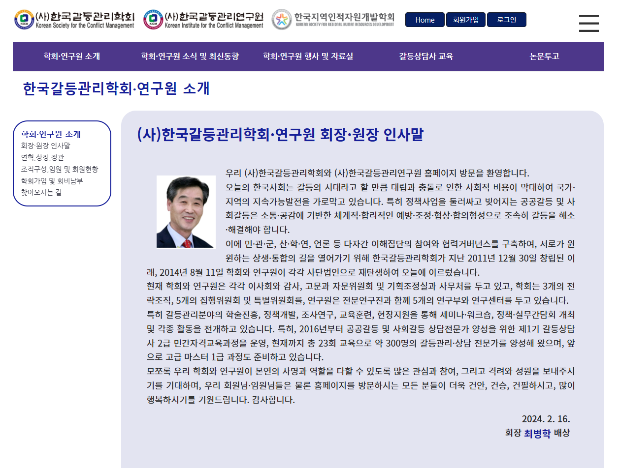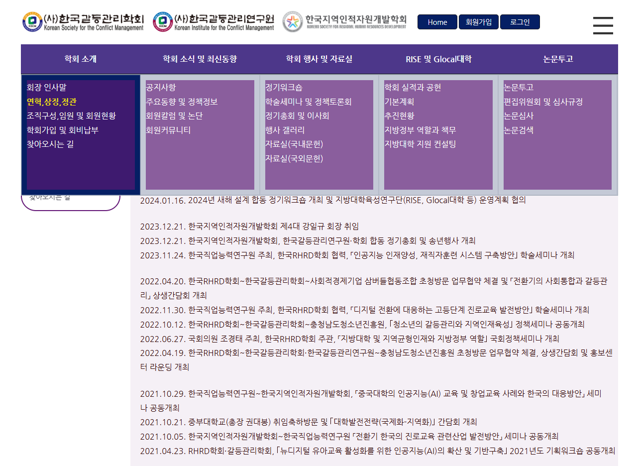 * 한국갈등관리연구원과 한국지역인적자원개발학회 홈페이지(2023.9.8 수주)