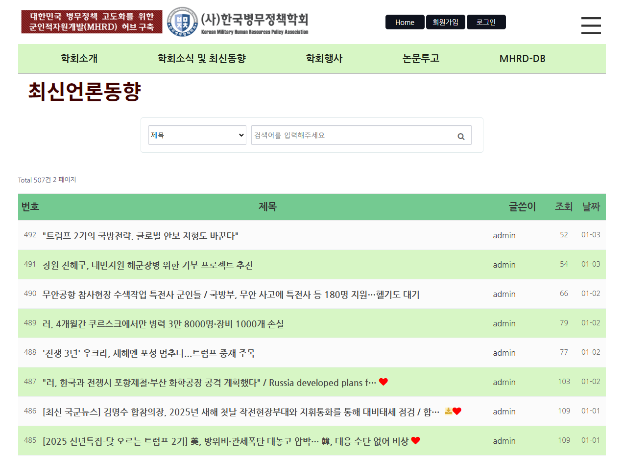 * 두 학회의 홈페이지를 하나의 메인페이지와 메뉴에 넣어서 구축